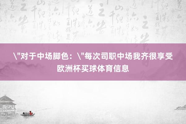 " 对于中场脚色: "每次司职中场我齐很享受欧洲杯买球体育信息