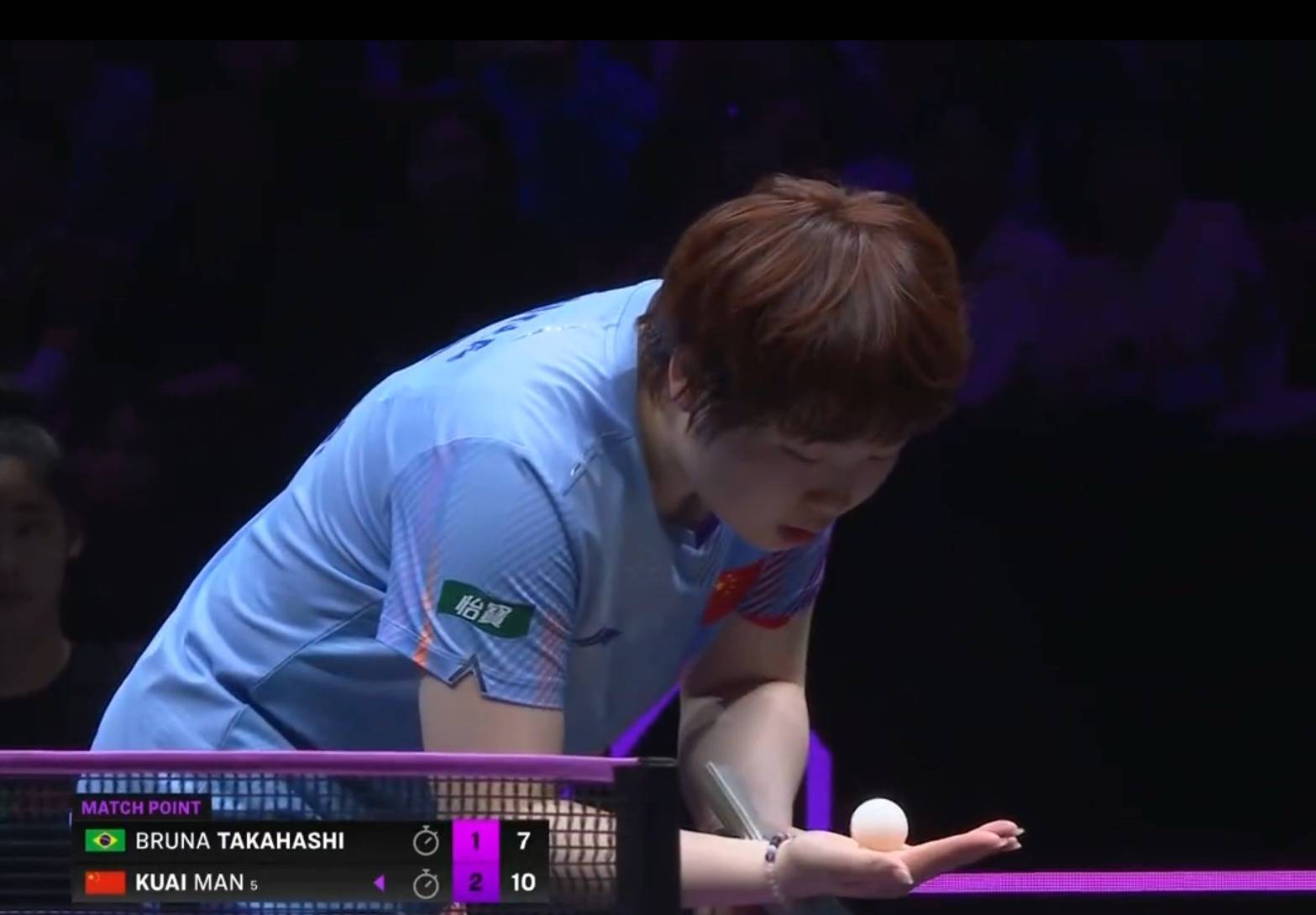 r蒯曼3比1校服高桥·布鲁娜,晋级八强。四局比分为:11比4、11比6、11比13、11比7。