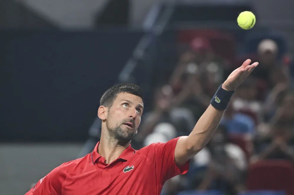 △ 10月7日,德约科维奇在比赛中发球。新华社记者 陈浩明 摄
